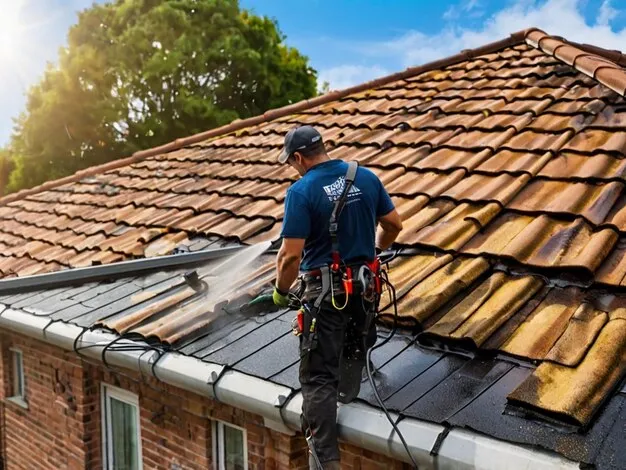 Professional roof cleaning services removing moss algae and debris improving appearance preventing damage and helping extend roof lifespan while maintaining drainage performance and overall property condition safely throughout London Surrey homes businesses